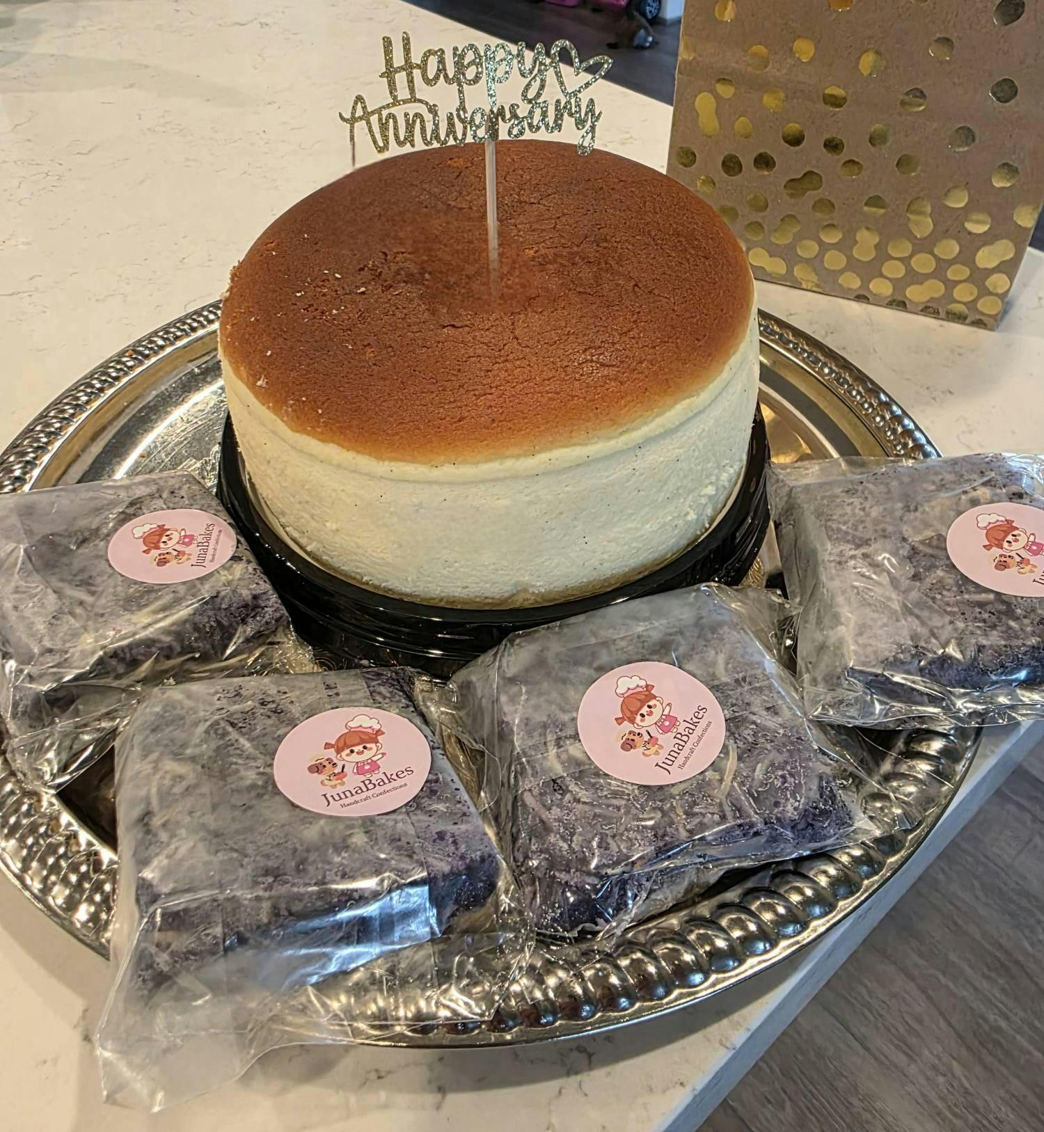 The cheesecake was moist and light...delicious! I also ordered the ube mochi brownies. The pastries arrived as estimated and were well packaged.